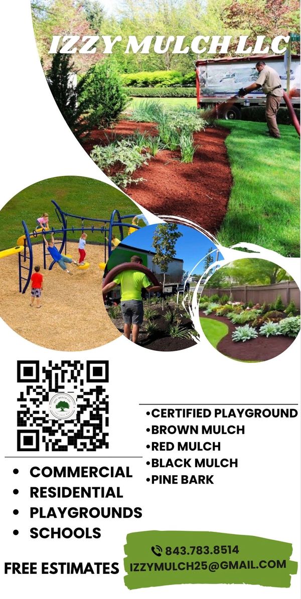 Whether you're landscaping a hillside or refreshing a playground, Izzy Mulch LLC is your go-to mulch and certified playground material blowing company. Quick. Clean. Professional.